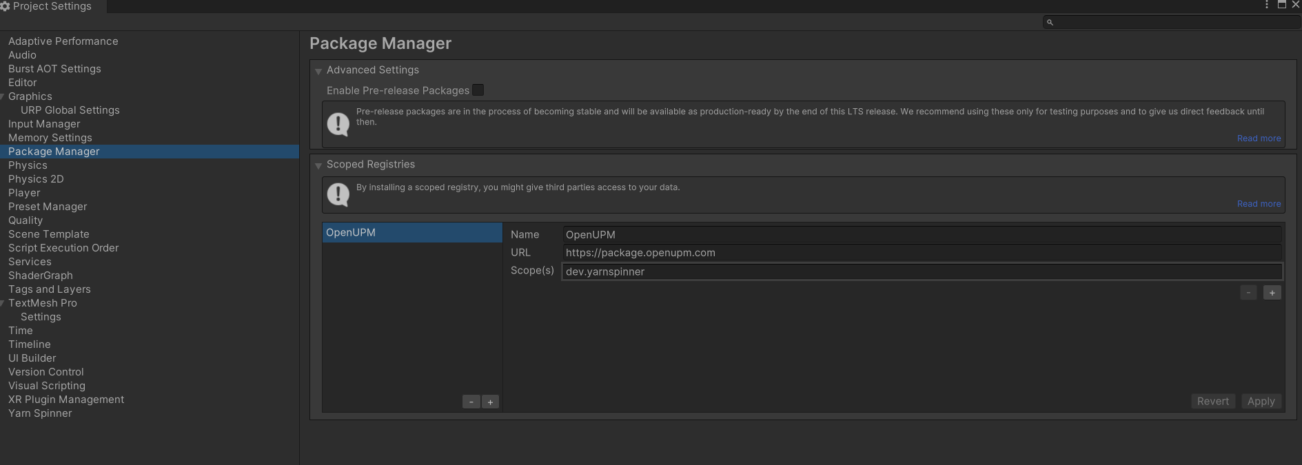 从编辑器上方依次打开Edit/Project Settings/Package Manager